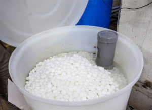 Восстанавливающие растворы готовятся в отдельных емкостях — баках с регенерантом. Последним может выступать таблетированная поваренная соль или перманганат калия. Для комплексных систем водоочистки и станций умягчения используют первый вариант, для реагентных установок обезжелезивания — второй.