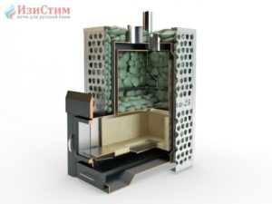 • между печью и элементами бани должно быть пространство не менее 110см., если меньше — покрыть негорючим материалом (листовая сталь, асбест)